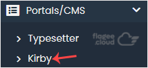 4. On the left side, locate the Portal/CMS category. Click on it and then on the Kirby link that appears.