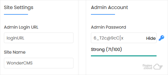 - Site Name: Enter the name of your website, such as WonderCMS.