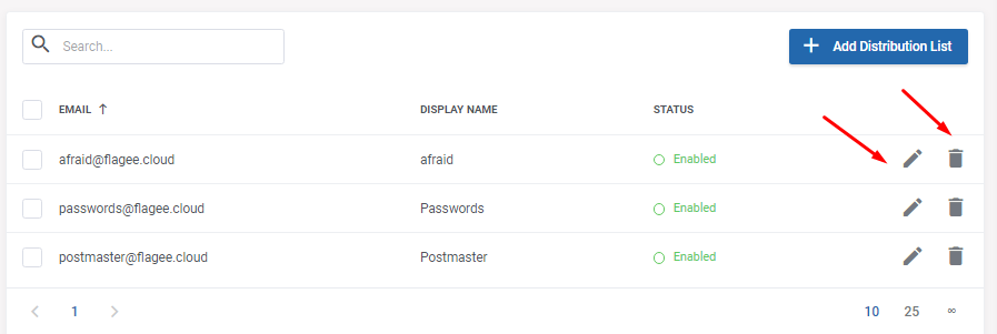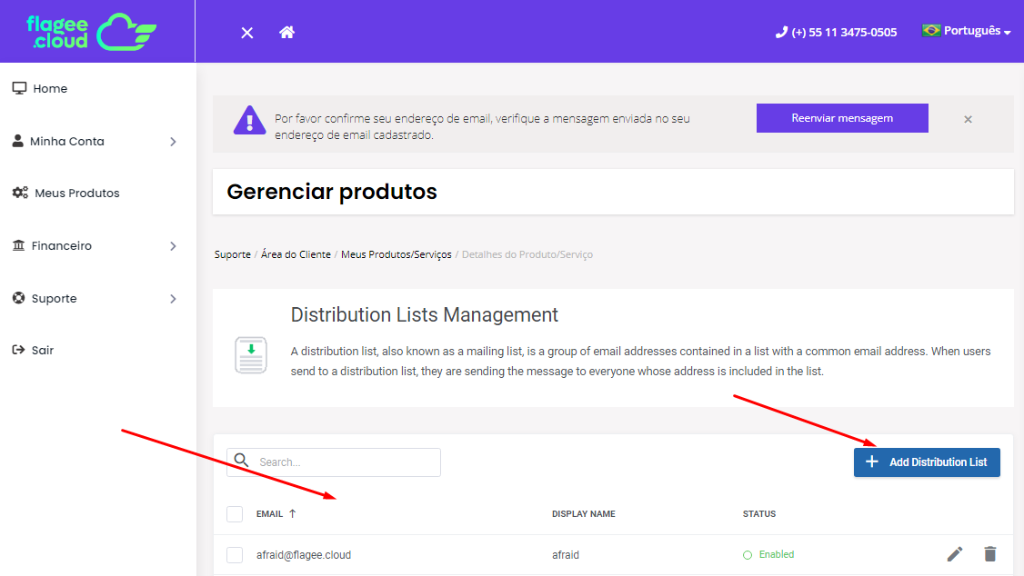 5. Ao clicar na opção Lista de distribuição você encontrará o histórico de outras listas que já foram criadas e poderá criar novas através do botão Add Distribution List.