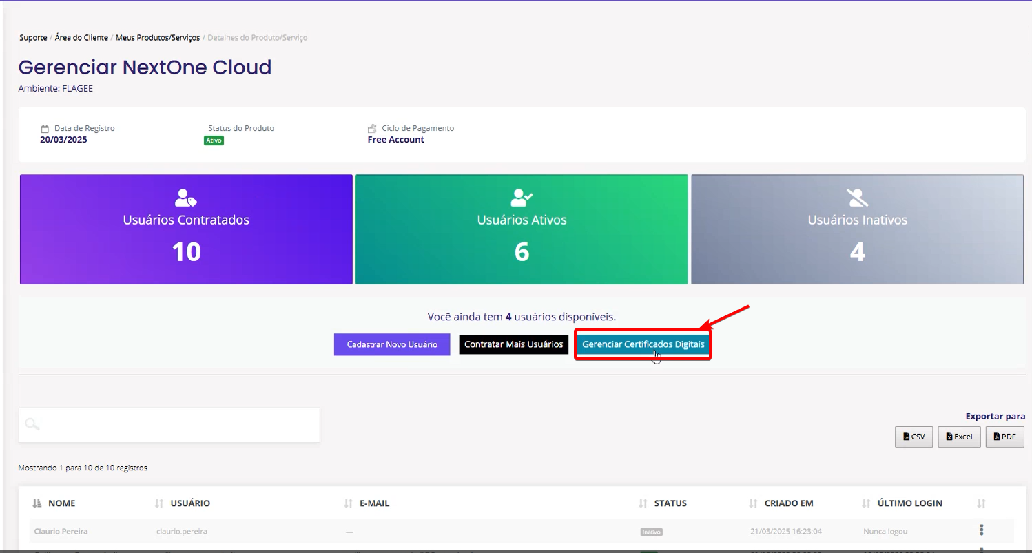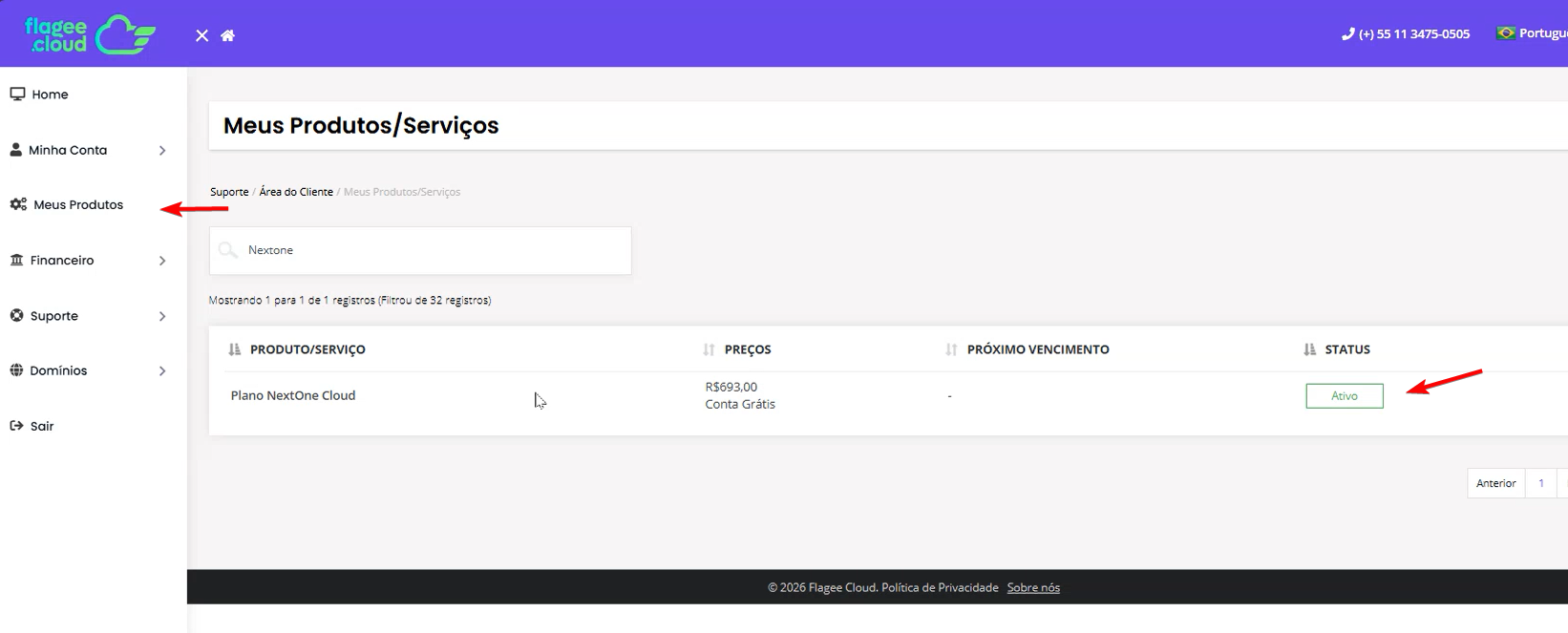 Dentro da tela de gerenciamento do NextOne Cloud: